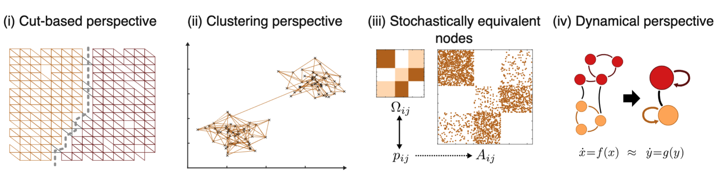 Rosvall M, Delvenne J-C, Schaub MT, Lambiotte R. Different approaches to community detection. In: Doreian P, Batagelj V, Ferligoj A, editors. Advances in network clustering and blockmodeling. Wiley; 2020. pp. 105–120. #Infomap, #modularity