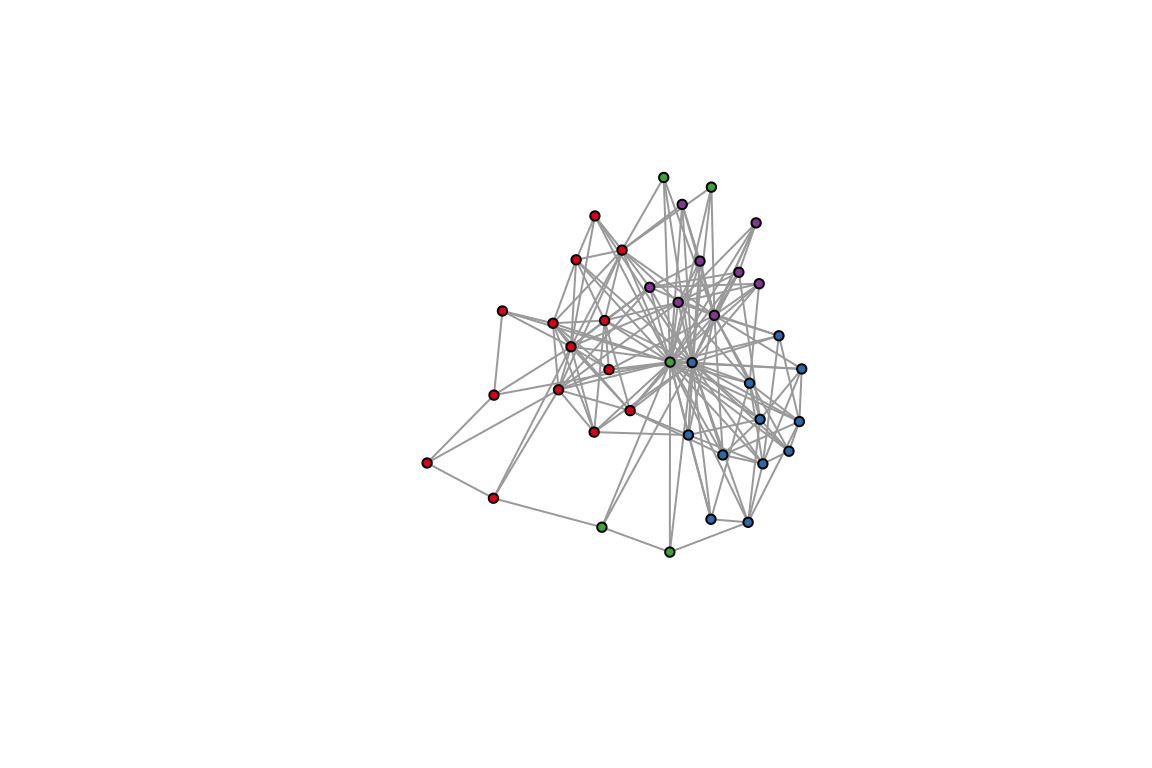 group_id_A <- apply(groups_A, 1, FUN = which.max) # The node belongs to a cluster to which it has highest probability