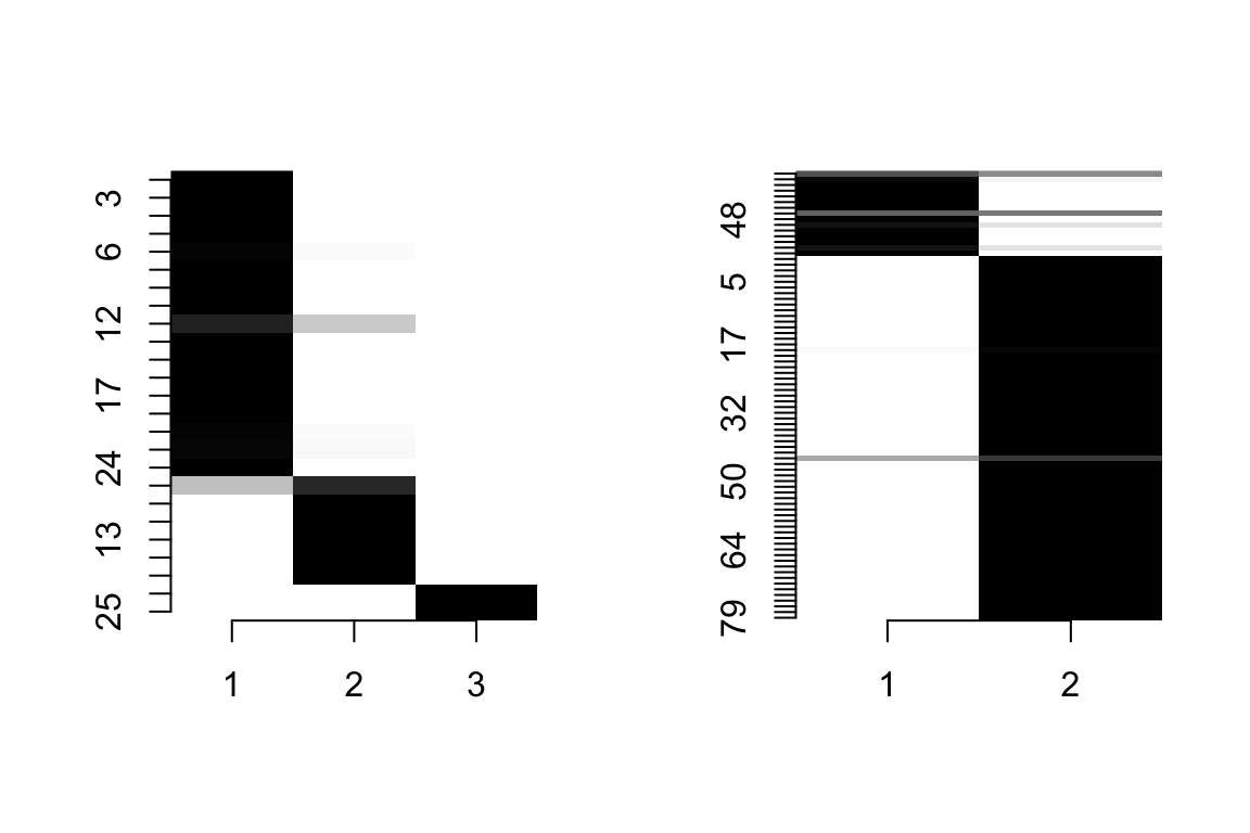 group_id_P <- apply(groups_P, 1, FUN = which.max) # The node belongs to a cluster to which it has highest probability