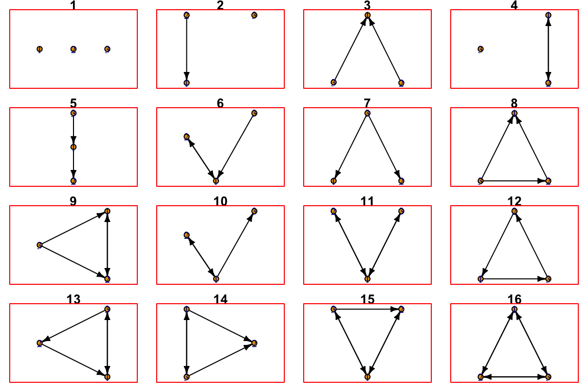 meaningful in directed networks. There are 16 kinds of 3-node subgraphs.